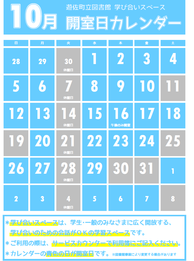 2025年9月26日 / 最終更新日 : 2025年9月26日 yuza_town_library 学び合いスペースのお知らせ